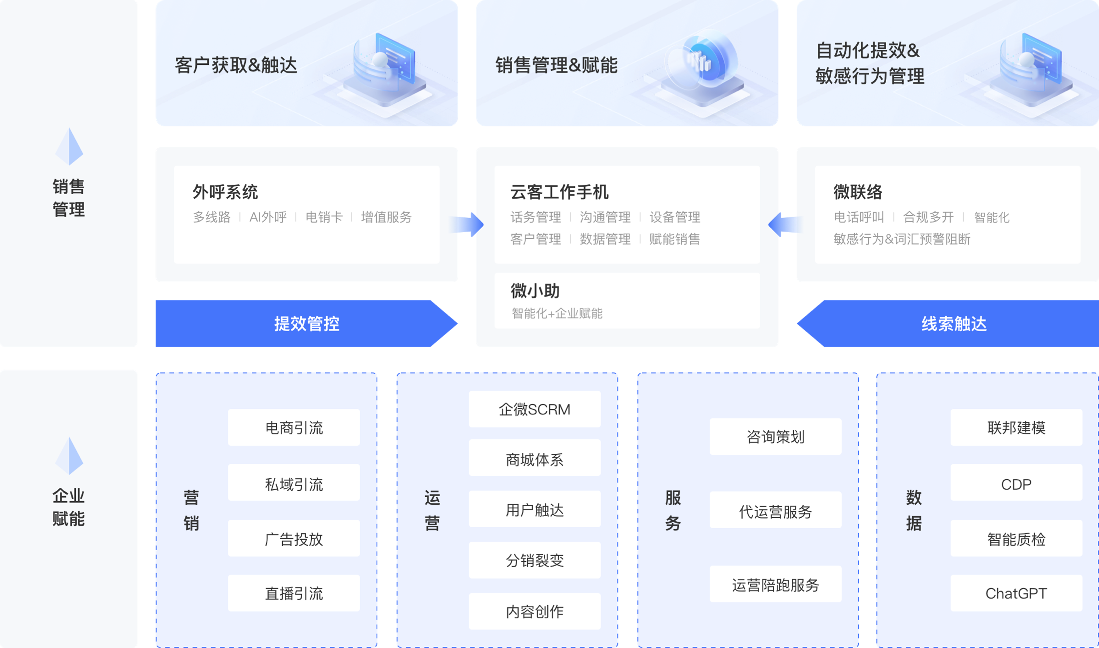 提供公域流量获客、销售过程管理、私域流量运营于一体